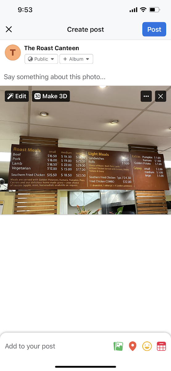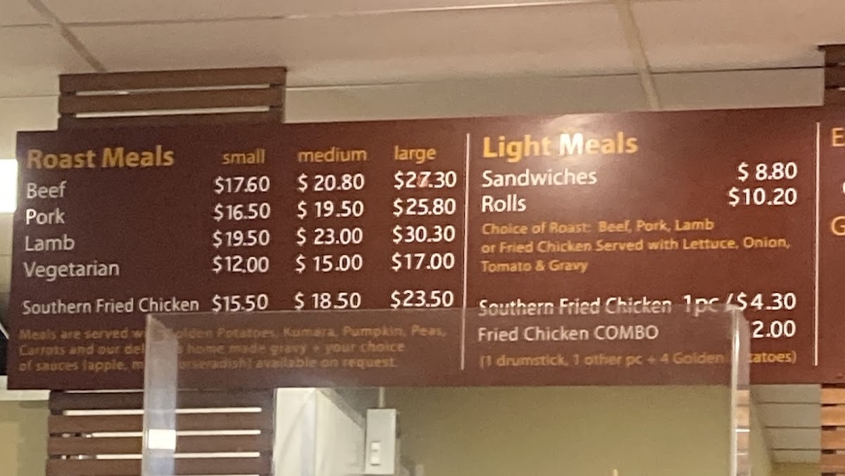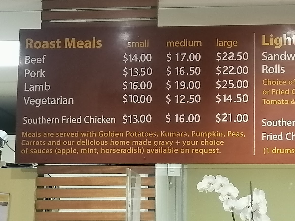 The Roast Canteen at Johnsonville offers a satisfying and diverse menu that caters to various tastes and preferences. Their Roast Meals are the highlight, with options like Beef, Pork, and Lamb available alongside a Vegetarian choice, ensuring that all guests can enjoy a hearty meal. For those craving something a bit more indulgent, the Southern Fried Chicken is a popular pick. The Light Meals section features simpler, yet equally tasty choices, including Sandwiches, Rolls, and the irresistible Southern Fried Chicken Combo. The restaurant also offers several tempting Extras, such as Golden Potato and Gravy, to complement your main dish and add extra flavor to your meal. Whether you're in the mood for a comforting roast or a lighter bite, The Roast Canteen has something for everyone.